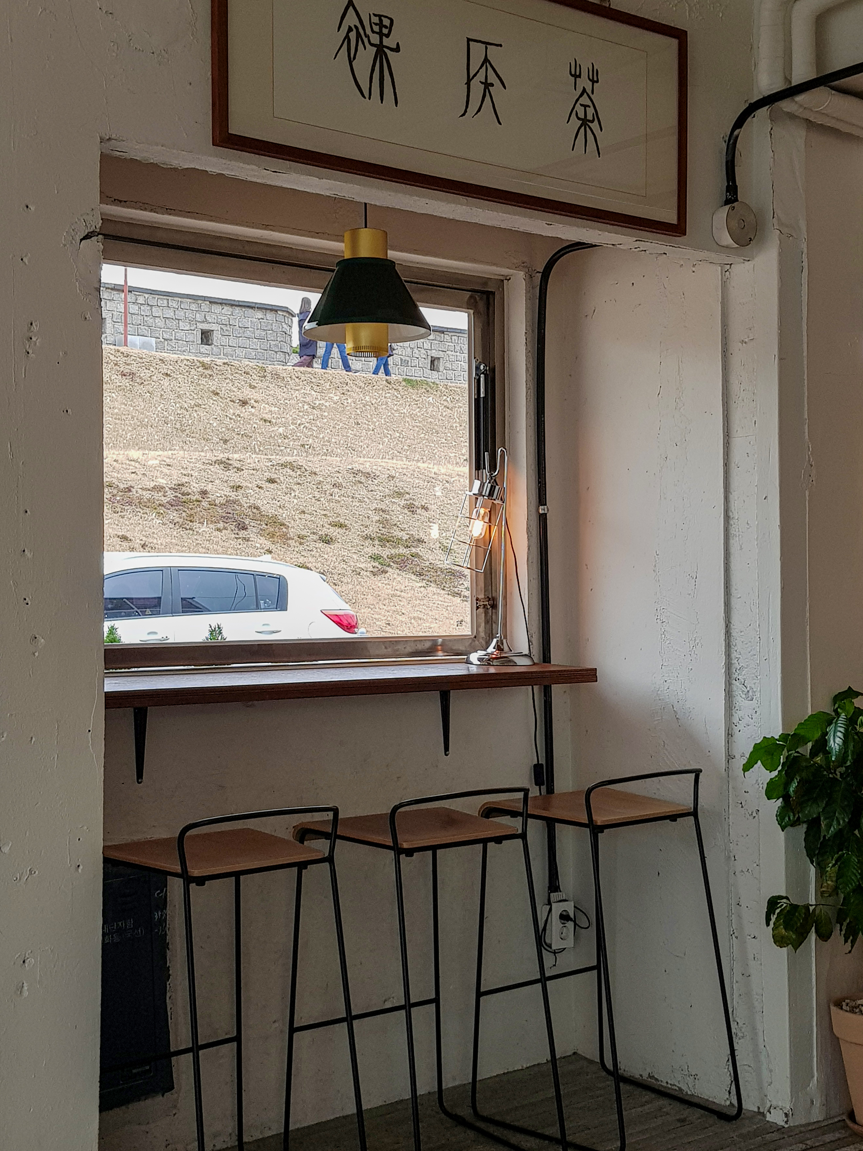 매장이 크진 않지만 구역별로 인테리어가 잘 되어있다. 조명으로 만든 오브제가 놓인 공간도 멋지고, 성곽을 바라보고 앉을 수 있는 창문 앞 자리도 예쁨.