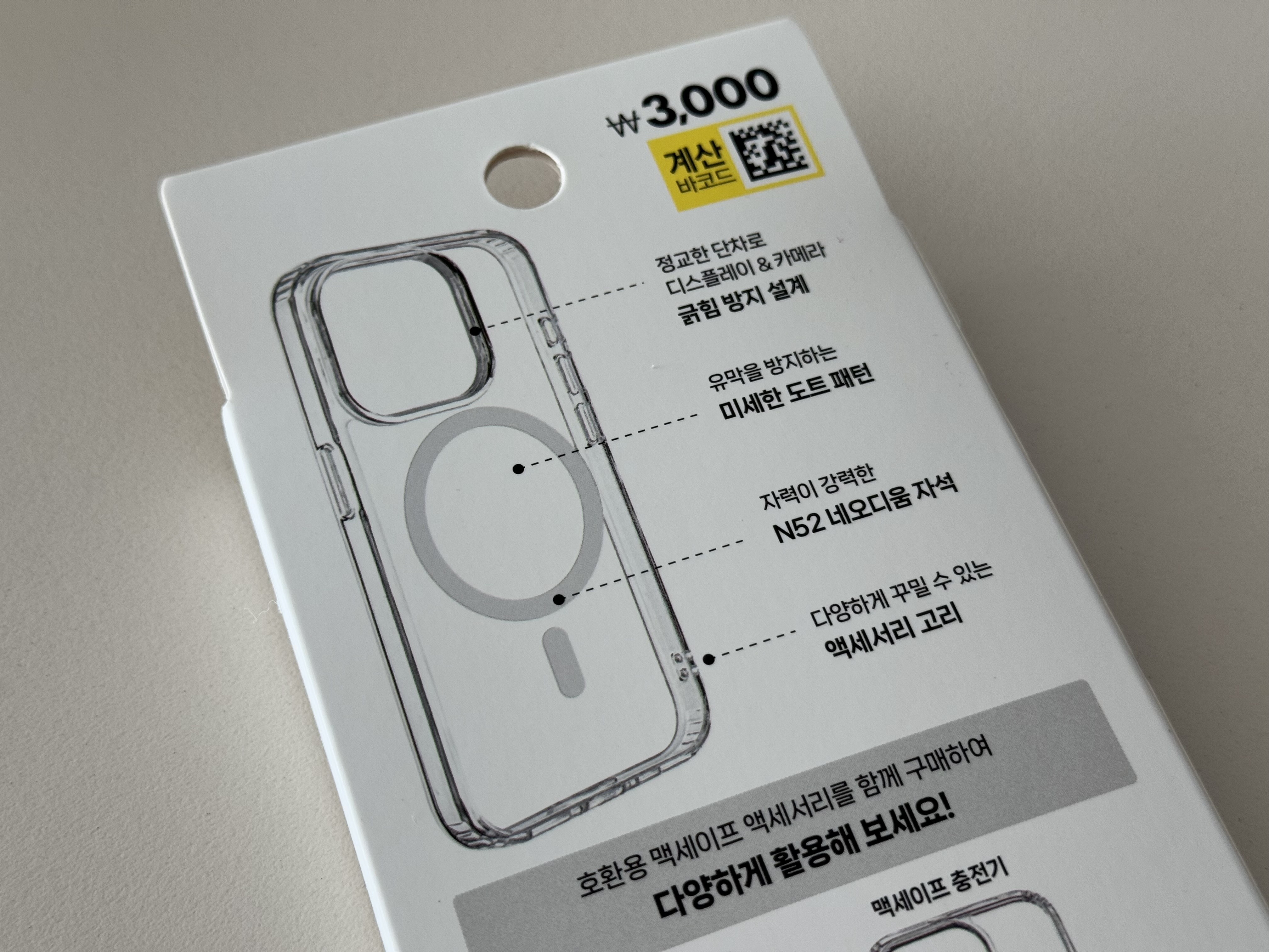 신지모루에서 사려고 했던 케이스는 1만 4천원 정도 했는데 다이소 맥세이프 케이스 아이폰15프로는 단돈 3천원이었다.