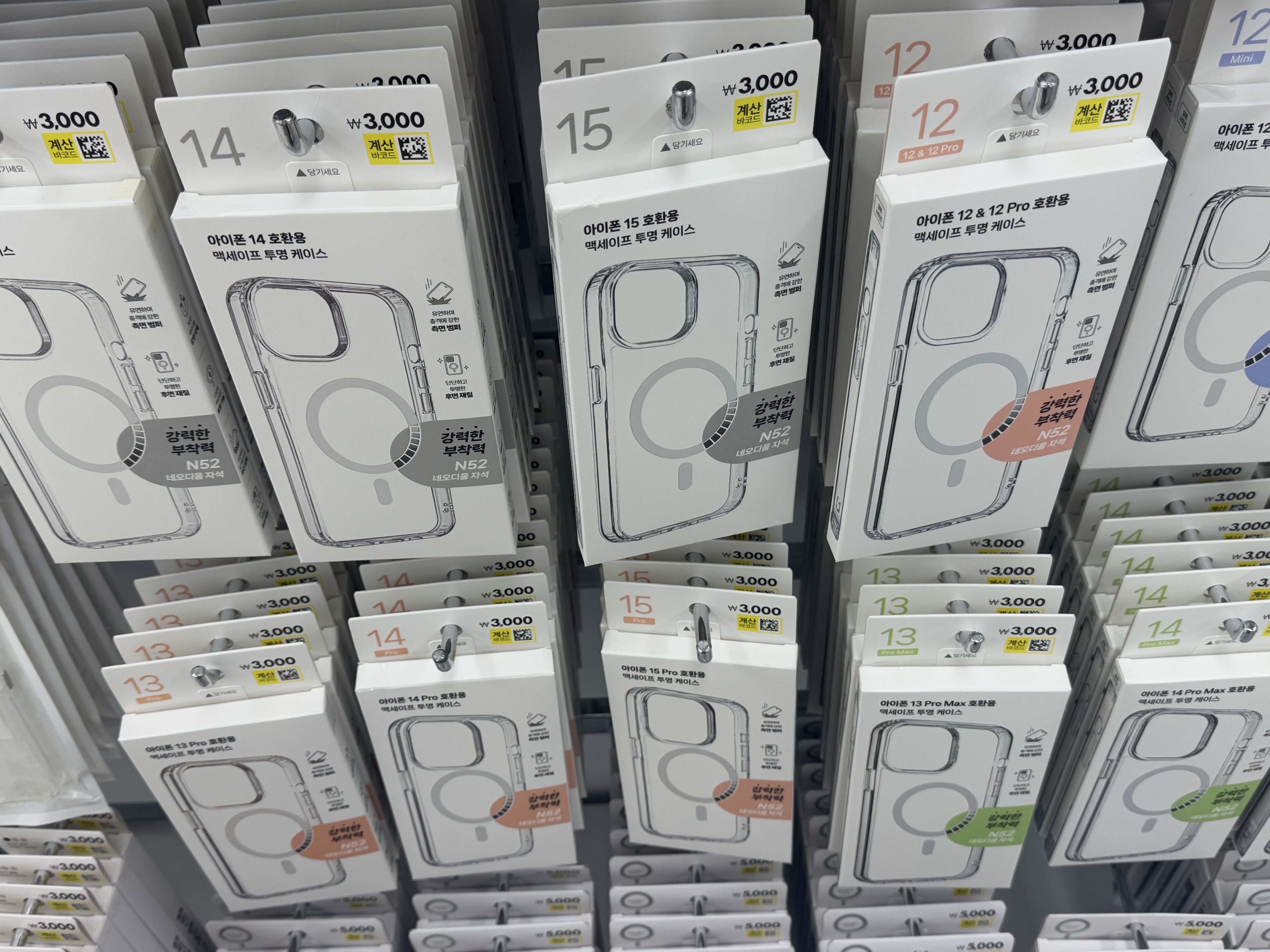 헉!! 최근에 출시가 된 것이 아닌가?!!! 소식을 접하고 며칠 뒤 바로 가까운 다이소로 달려갔고 다행히 진열대에서 다이소 맥세이프 케이스 아이포15프로를 발견할 수 있었다 :)
