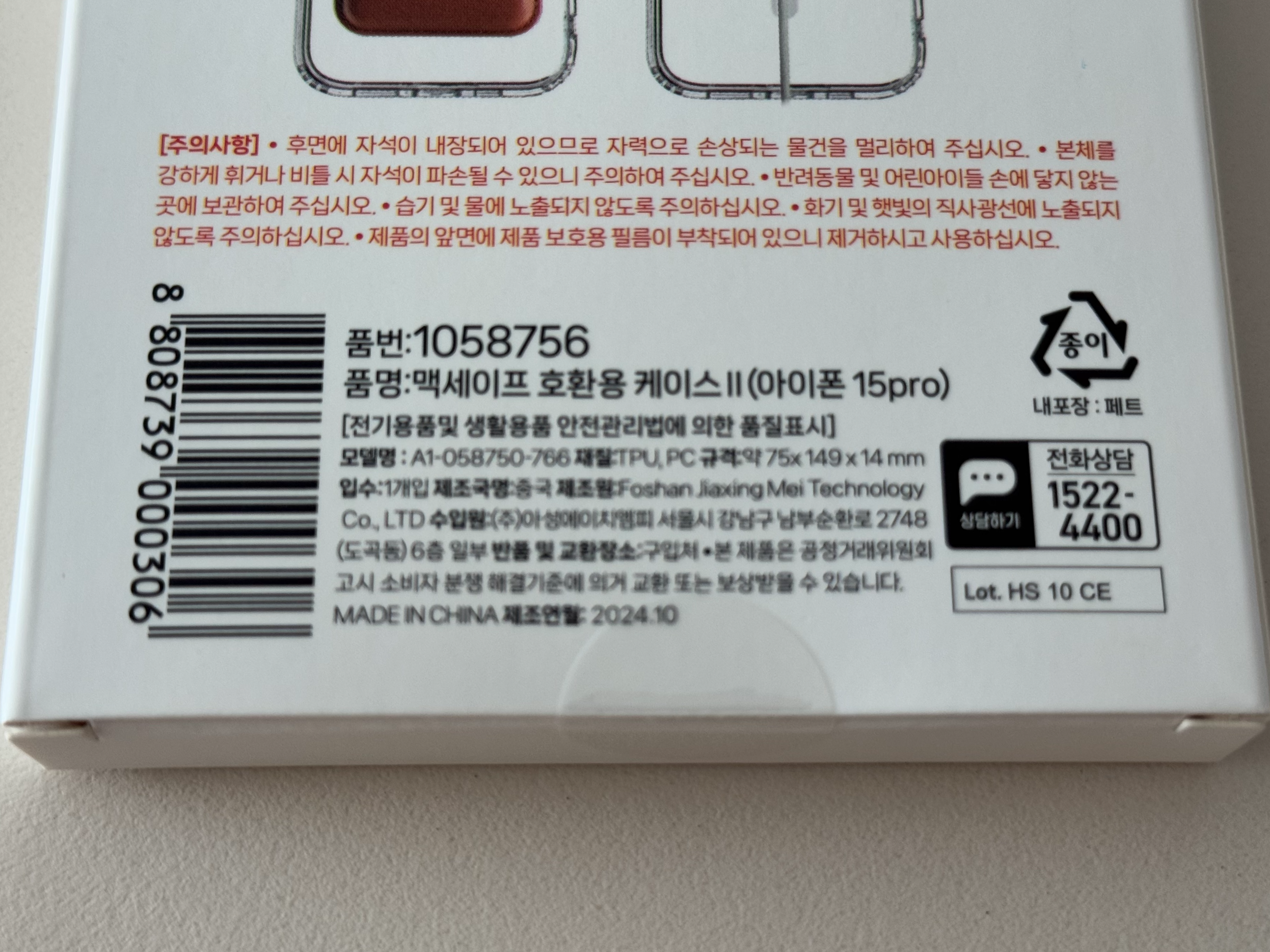 다이소 맥세이프 호환용 케이스 아이폰15프로의 품번을 1058756 이다.